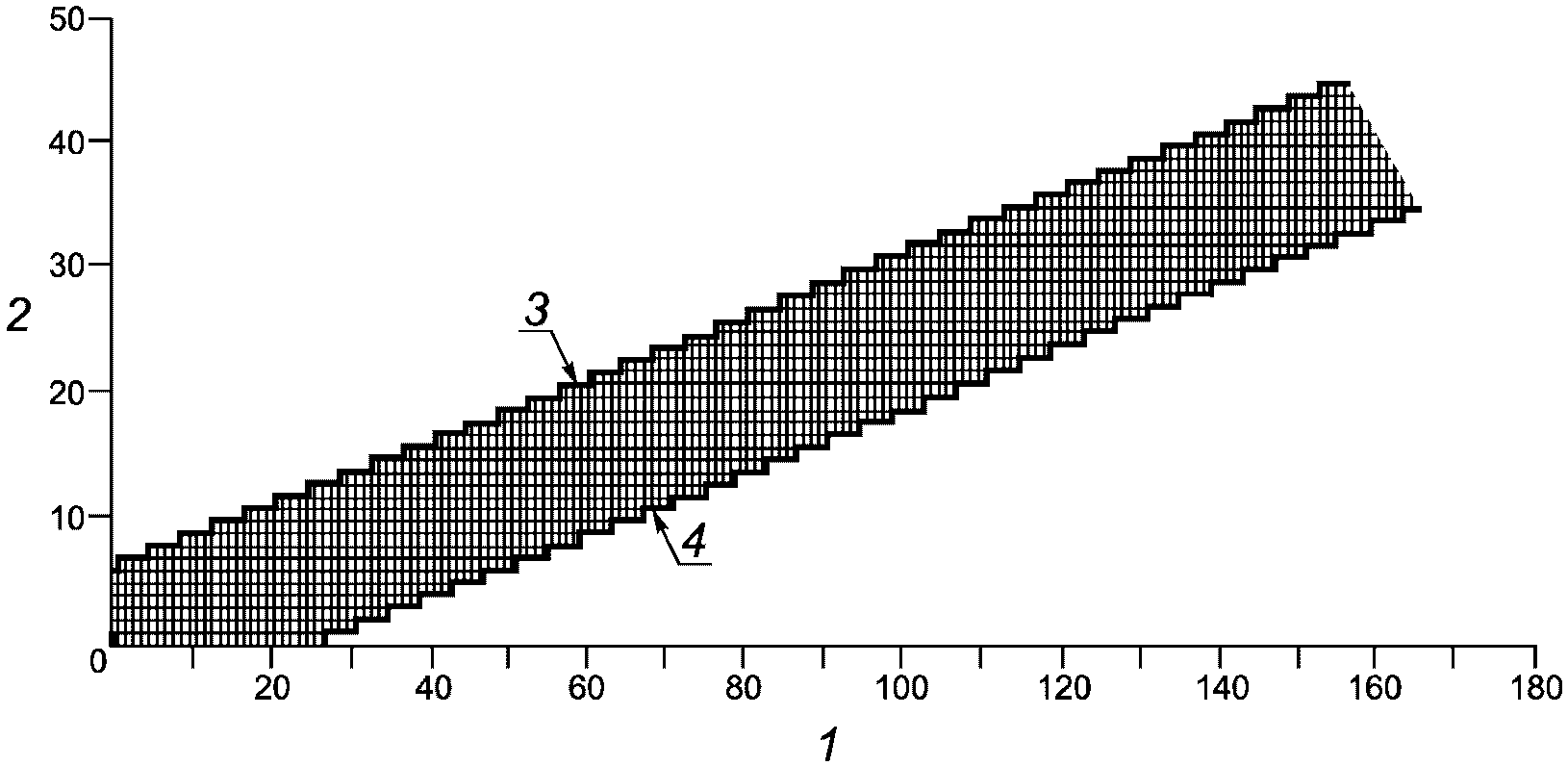 - не прошедшей испытание, если цепочка заполненных клеток проходит над линией предела 2 как на