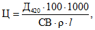Цветность сахара Ц в единицах оптической плотности вычисляют по формуле
