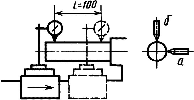 Заднюю бабку устанавливают возможно ближе к каретке. Пиноль задней бабки должна быть зажата в таком положении, чтобы измерительный прибор, закрепленный на каретке, всегда касался одной и той же точки.