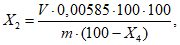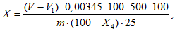 где V - объем раствора марганцовокислого калия концентрации точно 0,1 моль/дм3, израсходованный на титрование контрольного раствора, см3;