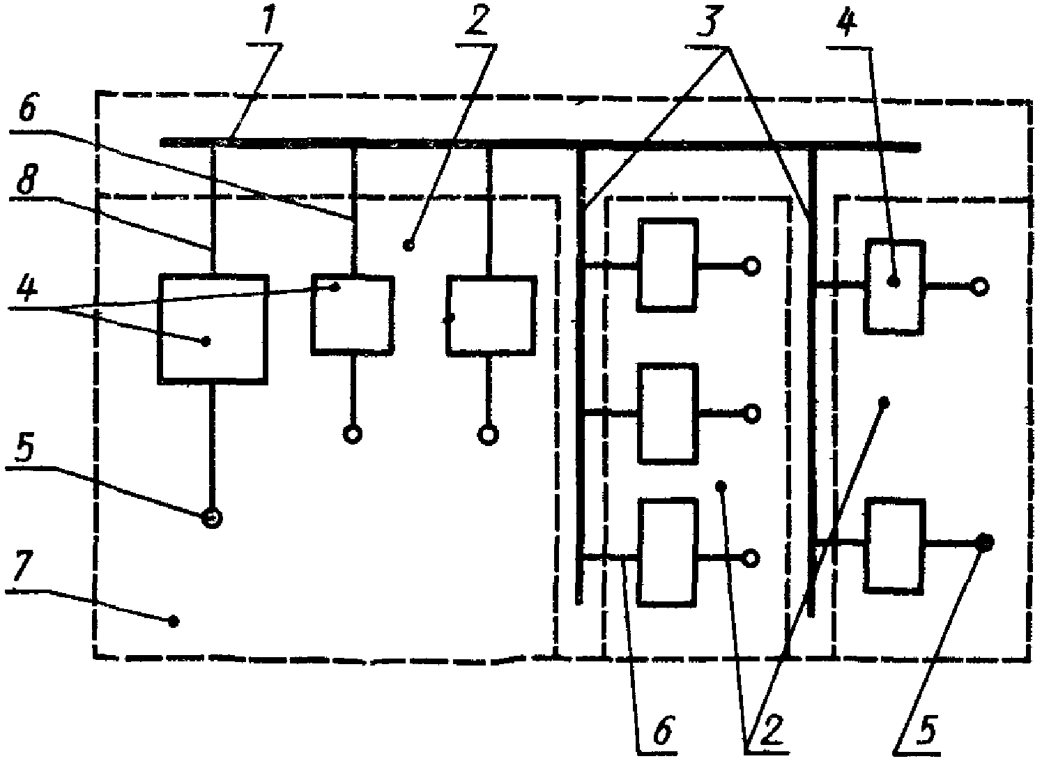 замыкания; 3 - шина; 4 - блок вывода; 5 - проводник,