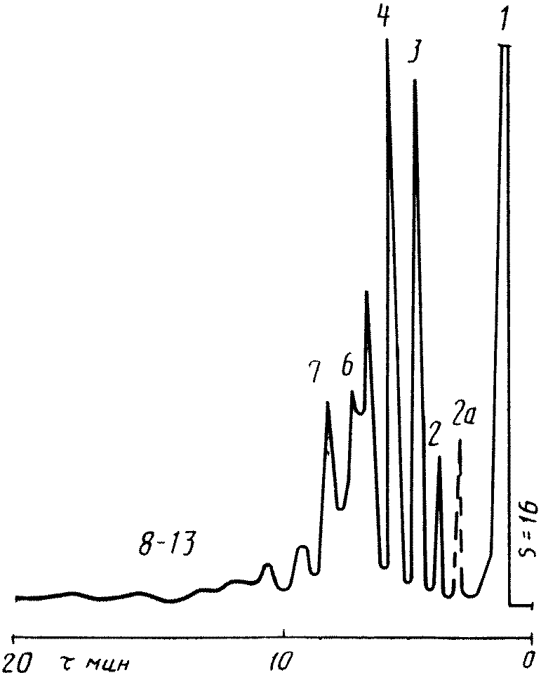 табл. 1, но при этом бензол должен элюироваться после додекана, а четкость разделения углеводородов должна быть не хуже, чем на приведенной хроматограмме