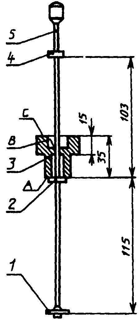 7.1.3. Мешалка вискозиметра металлическая, представляющая собой стержень с двумя ограничителями и колесиком на нижнем конце. Мешалка должна плавно двигаться в эбонитовой втулке, и ее масса без втулки должна составлять (25,00 +/- 0,05) г.