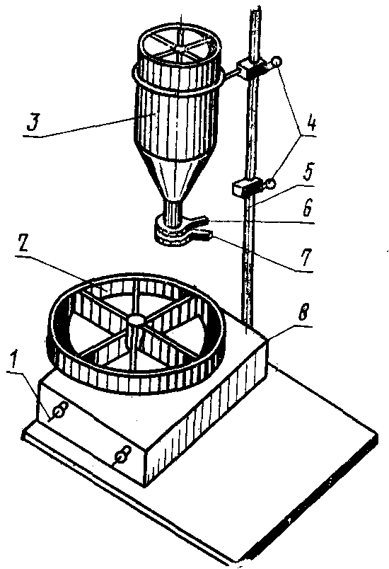 4 - электромагнит; 5 - бункер; 6 - емкость для пробы
