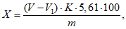 где V - количество раствора 0,1 моль/дм3 гидроокиси калия, израсходованное на титрование, см3;