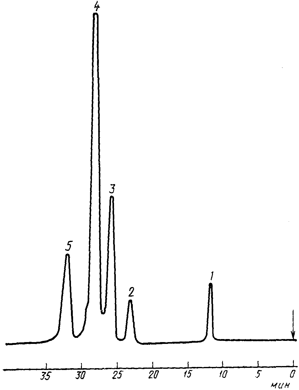 Типовая хроматограмма каменноугольного ксилола приведена на чертеже.