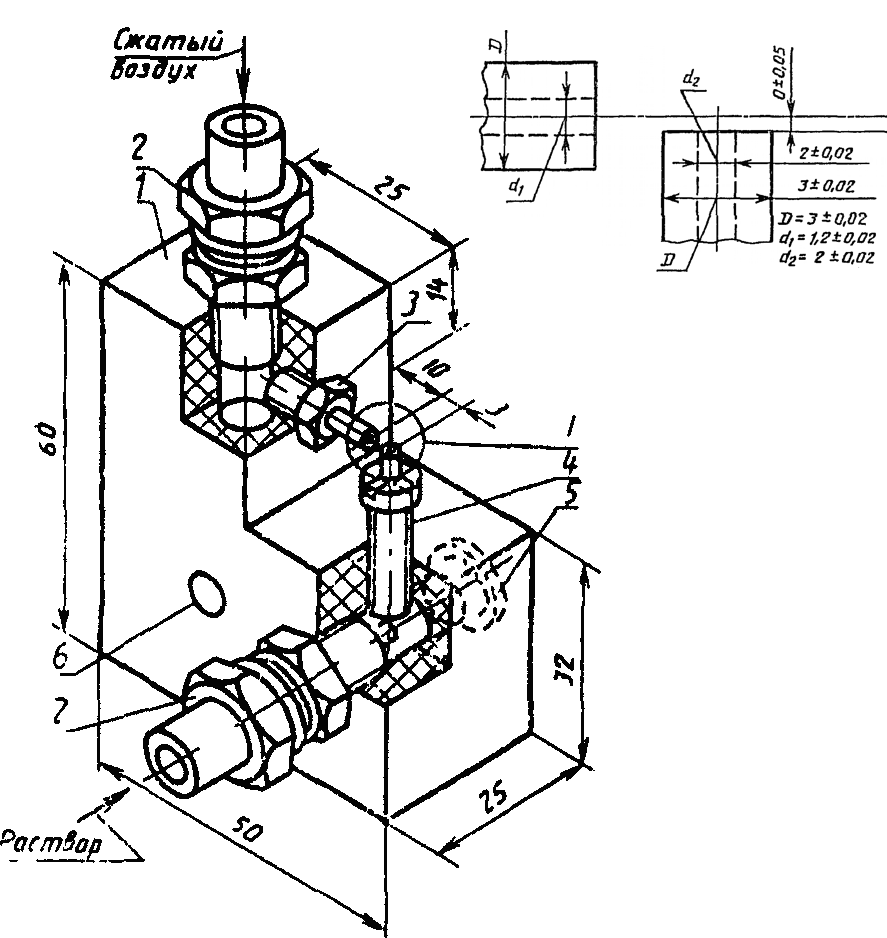 К воздушному соплу должен подводиться отфильтрованный очищенный от масла сжатый воздух при давлении (7 +/- 0,28) кгс/см2.