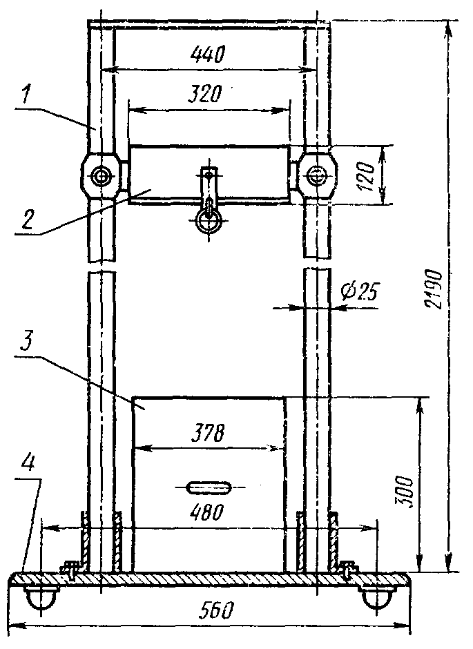 1 - подставка; 2 - ящик с коксом; 3 - направляющая;