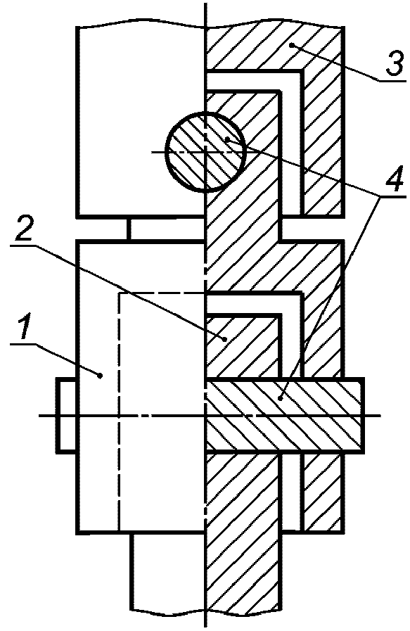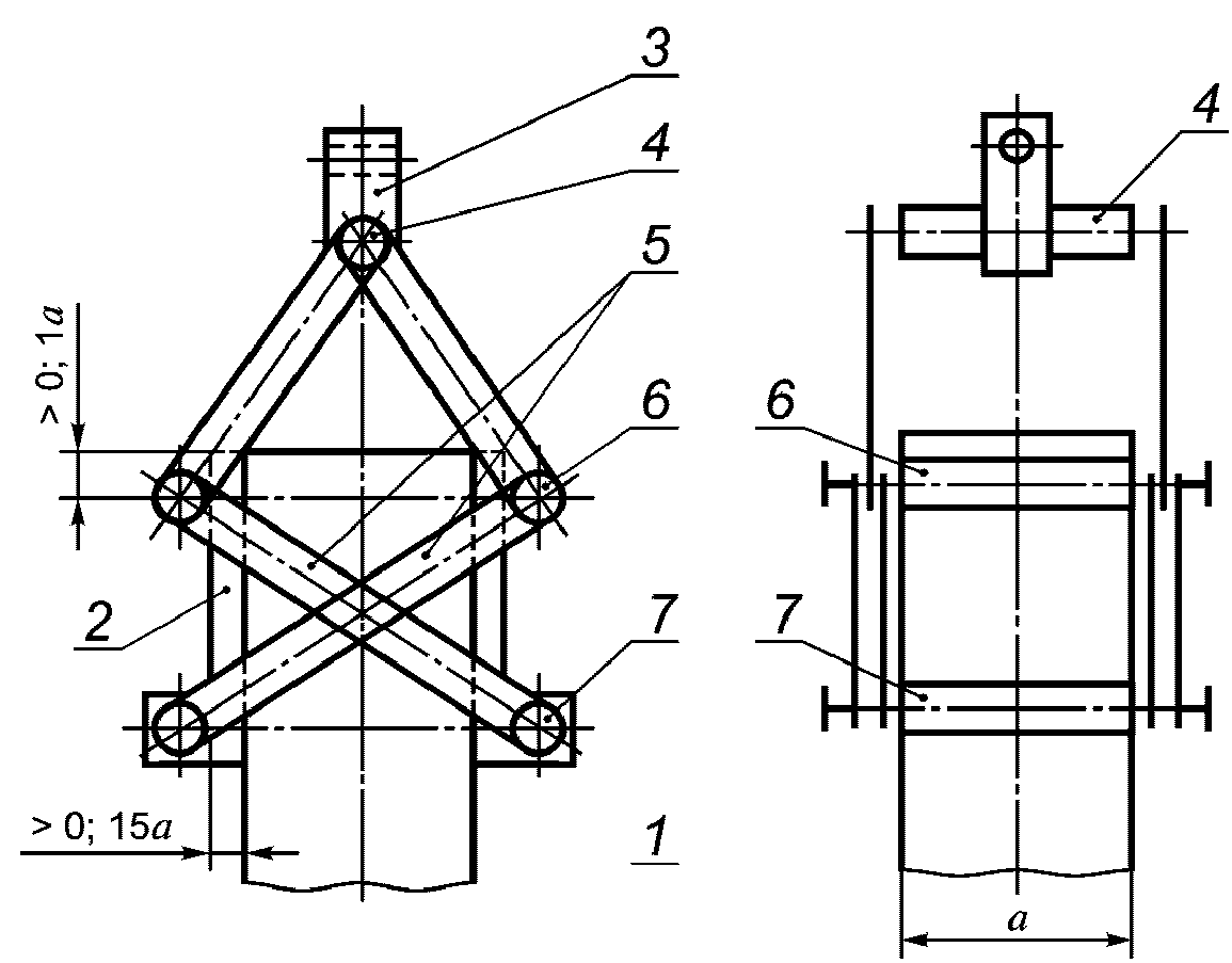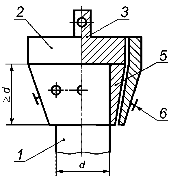 К.4. Для обеспечения соосности передачи усилия между захватами их следует соединять с опорными устройствами испытательной машины через шарнир Гука. Концевой элемент 2 шарнира Гука (см.