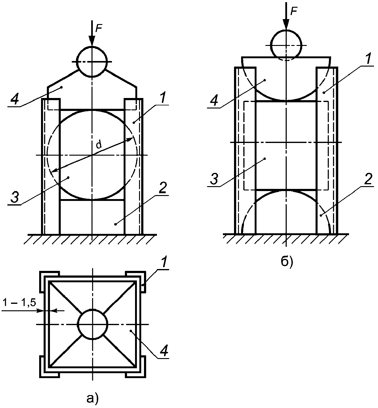 Для обеспечения требуемой схемы приложения нагрузки рекомендуется применять кондуктор (см. рисунки И.2 и