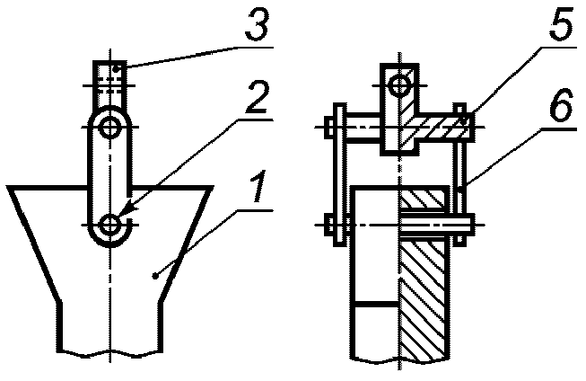 шарнира Гука; 4 - ось; 5 - тяга; 6 - подвижная опора