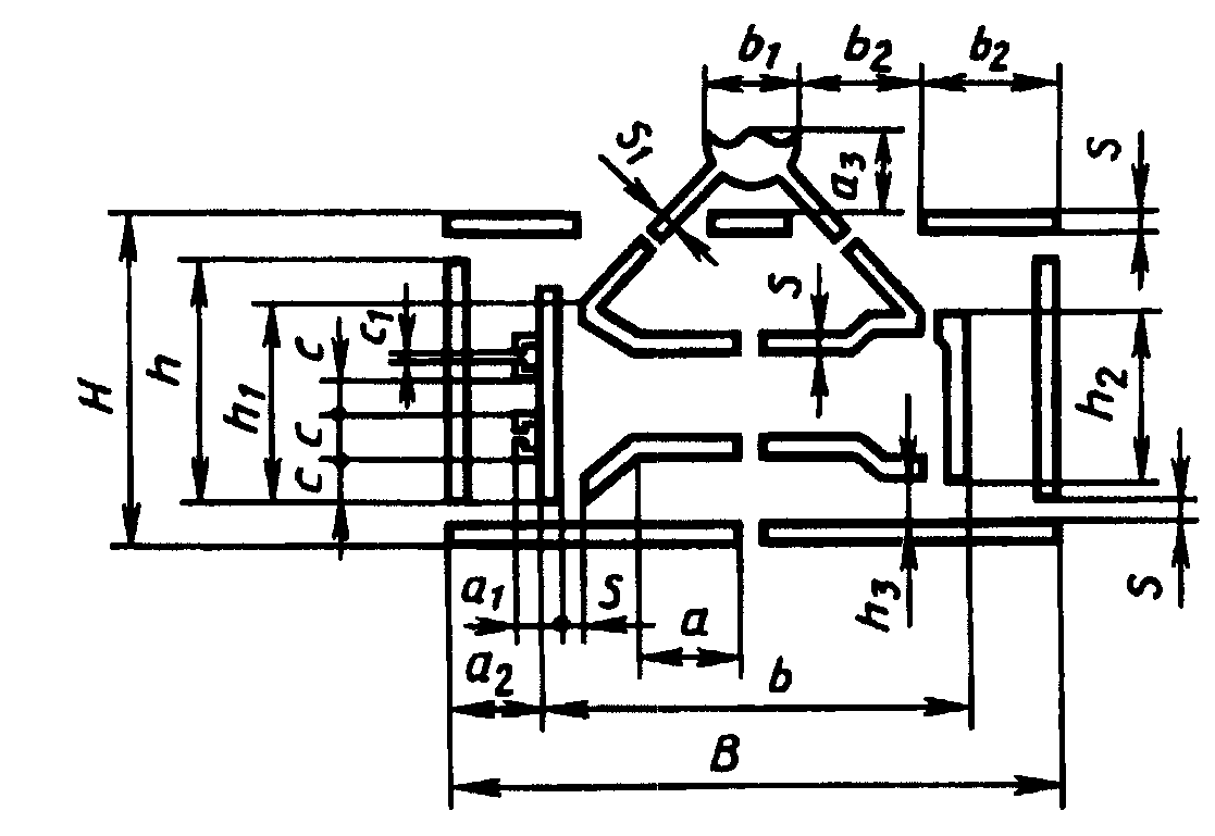 H | B | h | h1 | h2 | h3 | b | b1 | b2 | a | a1 | a2 | a3 | S | S1 | c | c1 |