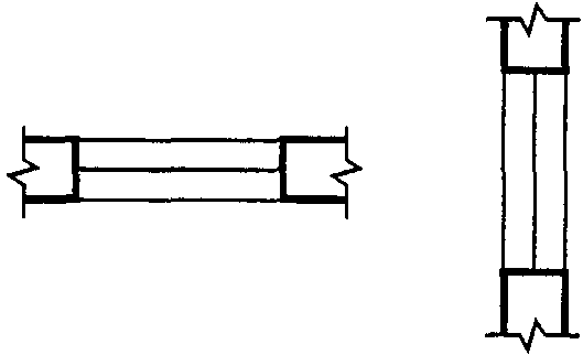 1.3. Прямые стержни, расположенные друг над другом на плане или виде, с маркировкой соответствующих концов стержней, показанных тонкой линией | ![]() |