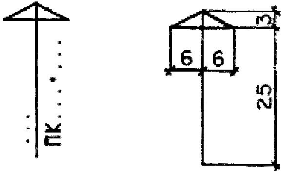 3. Граница участков строительства Примечание. Римскими цифрами указывают номера участков. Слева от ординаты (выносной линии) указывают пикетажное положение. | ![]() |