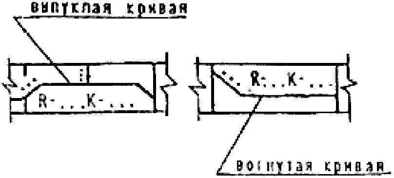 7.2. Точки сопряжения элементов Примечание. В точках сопряжения различных участков дороги над проектной линией проводят линии ординат, слева от которых указывают расстояние до ближайшего пикета и уклон с соответствующим знаком, справа - проектную отметку. Числовое значение радиуса указывают с внутренней стороны вертикальной кривой (со знаком "+" для выпуклой кривой и знаком "-" - для вогнутой). | ![]() ![]() |