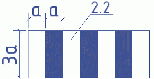 2.1 | Разметка вертикальных поверхностей дорожных сооружений (опор мостов, путепроводов, торцевых частей парапетов и т.п.). 2.1.1 - слева от проезжей части; 2.1.2 - на проезжей части; 2.1.3 - справа от проезжей части данного направления движения | ![]() |