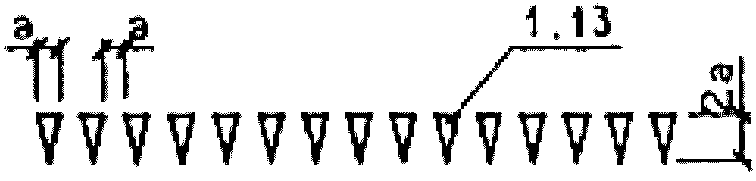 1.19 | Обозначение приближения к сужению проезжей части или к сплошной линии продольной разметки 1.1 | ![]() |