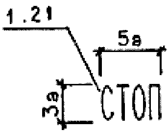 1.21 | Обозначение приближения к поперечной линии разметки 1.12 Примечание. Наносят буквами русского или латинского алфавита. | ![]() |