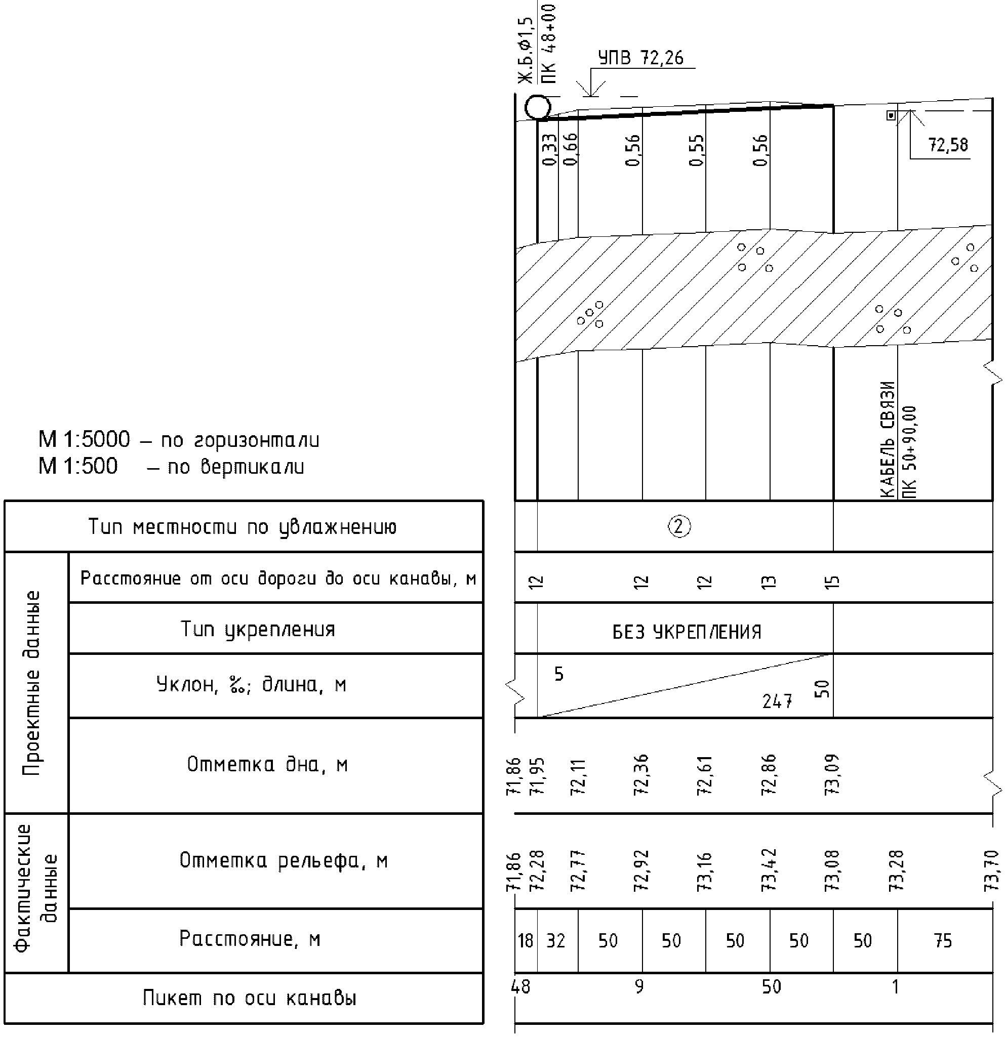 ПРИМЕР ОФОРМЛЕНИЯ ПРОДОЛЬНОГО ПРОФИЛЯ ВОДООТВОДНОЙ КАНАВЫ