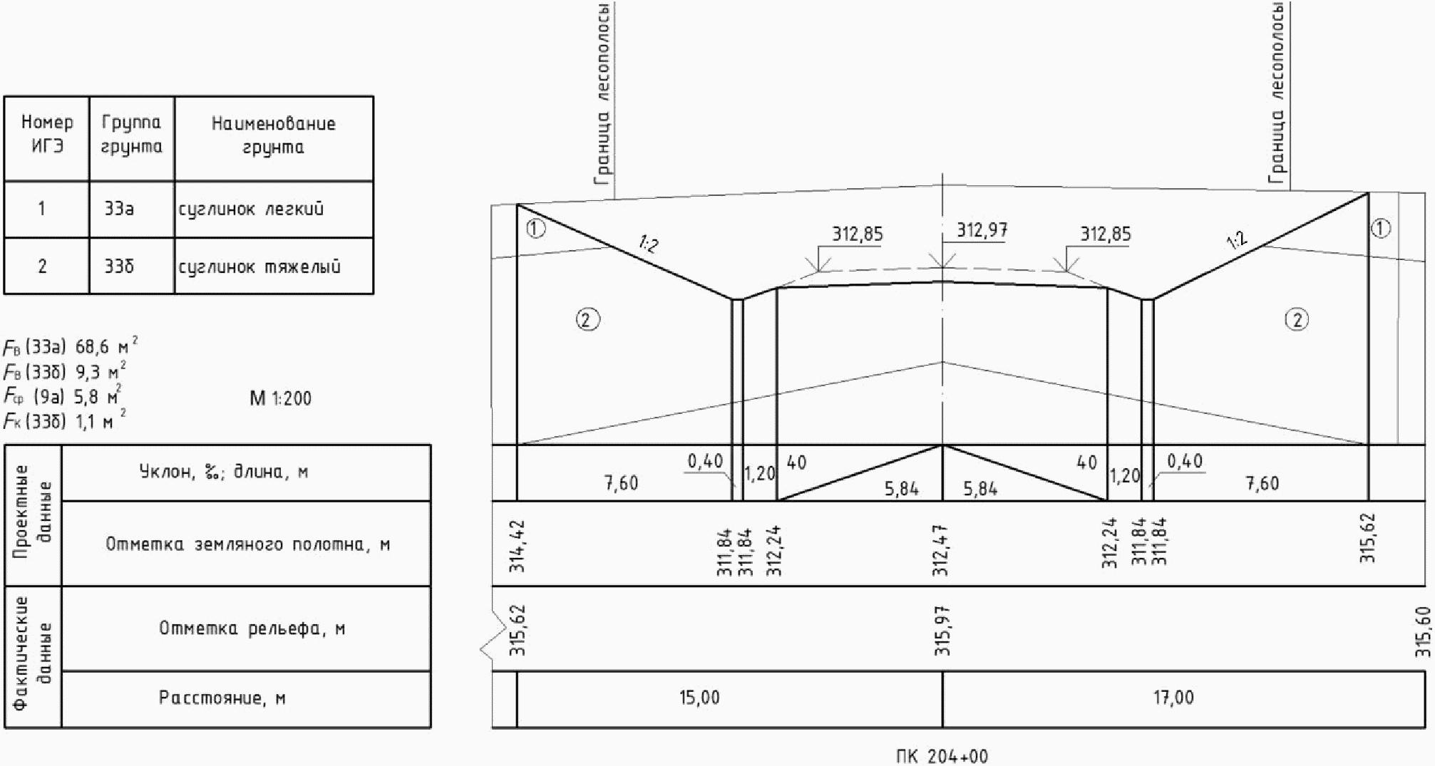 ПРИМЕРЫ ОФОРМЛЕНИЯ ПОПЕРЕЧНОГО ПРОФИЛЯ ЗЕМЛЯНОГО ПОЛОТНА