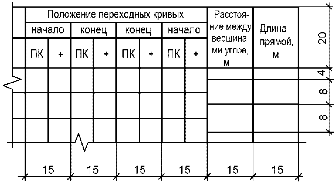 ПРИМЕР ЗАПОЛНЕНИЯ ВЕДОМОСТИ УГЛОВ ПОВОРОТА, ПРЯМЫХ И КРИВЫХ