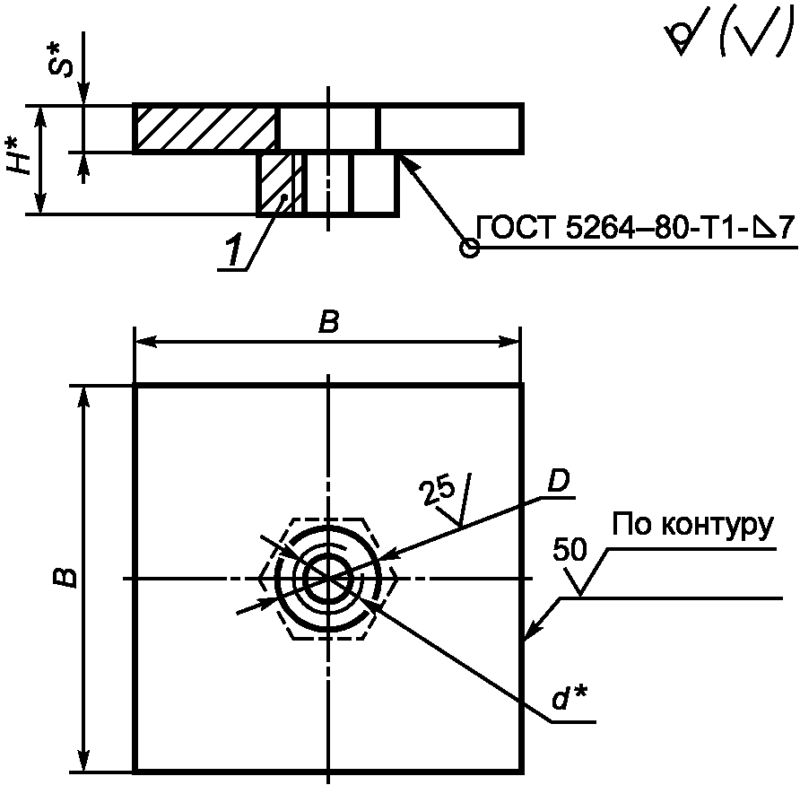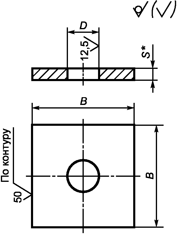 Номинальный диаметр резьбы d <*> | D Предельное отклонение по H16 | H <*> | S <*> | B Предельное отклонение по | Теоретическая масса плиты, кг |