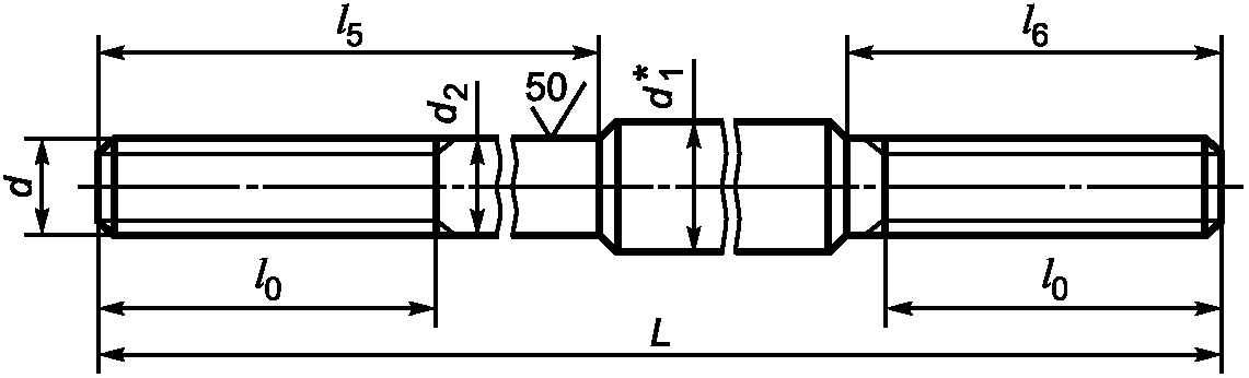 Номинальный диаметр резьбы d | Шаг резьбы | d*1 | d2 | d3 | d4 | d5 | d6 | l0 | l | l1 | l2 | l3 | l4 | l5 | l6 | |