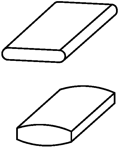1.5. Выпуклость: отклонение от плоскостности, при котором удаление точек поверхности поперечного сечения металлопродукции от прилегающей горизонтальной или вертикальной плоскости уменьшается от краев к середине. | |