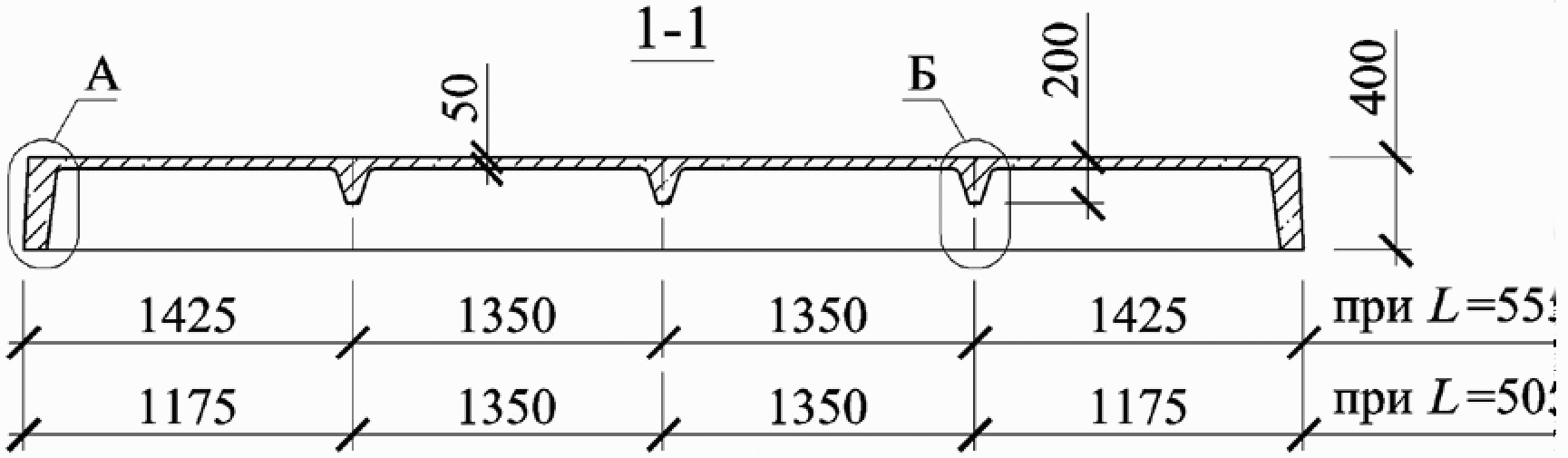 2П1 | 5950 | 1485 | 2,40 (1,9) | Рядовые; рядовые у торца или температурного шва здания или сооружения |