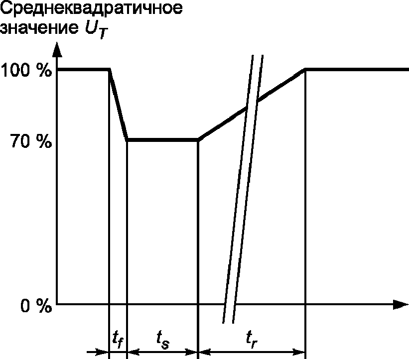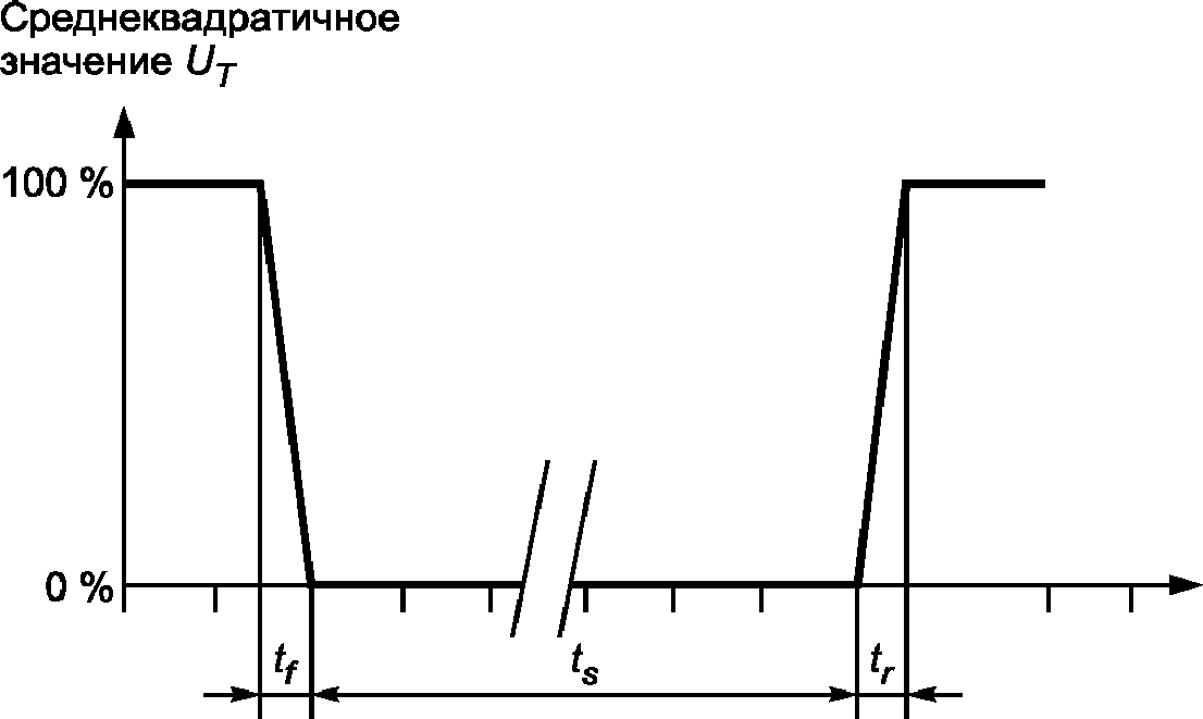 Примечание. Кратковременные прерывания напряжения обычно связаны с процессами коммутации, вызванными появлением и окончанием коротких замыканий в системе электроснабжения или установках, подключенных к ней.