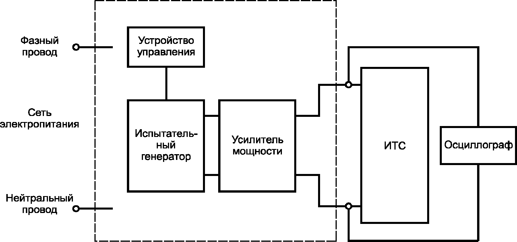 ИГ с меньшим пиковым значением нагрузочного тока допускается применять при испытаниях, если пиковое значение потребляемого тока ИТС меньше, чем пиковое значение нагрузочного тока ИГ. Схема, приведенная на