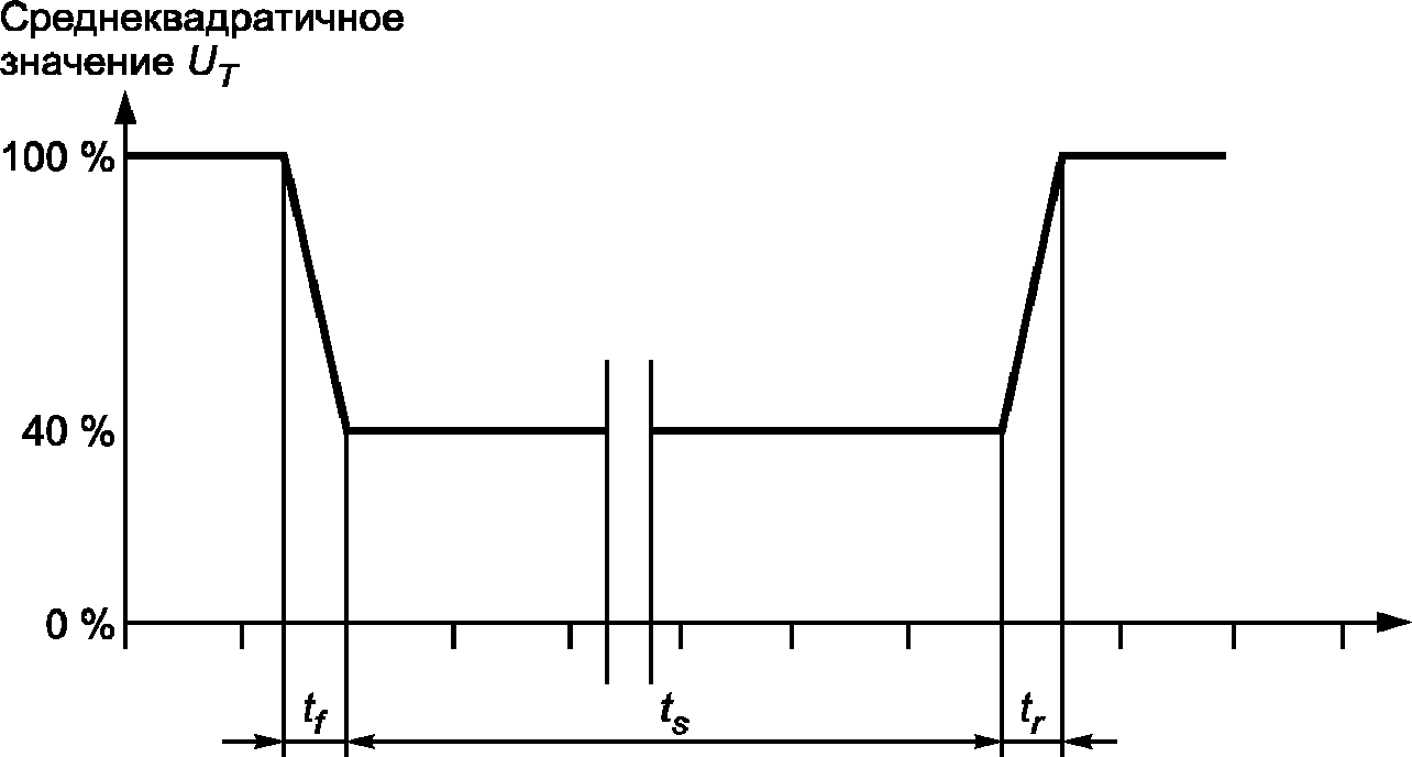 3.3. Кратковременное прерывание напряжения (short interraption): резкое понижение напряжения во всех фазах в определенной точке системы электроснабжения ниже заданного для прерываний напряжения порогового значения с последующим возвращением к исходному значению через короткий промежуток времени.