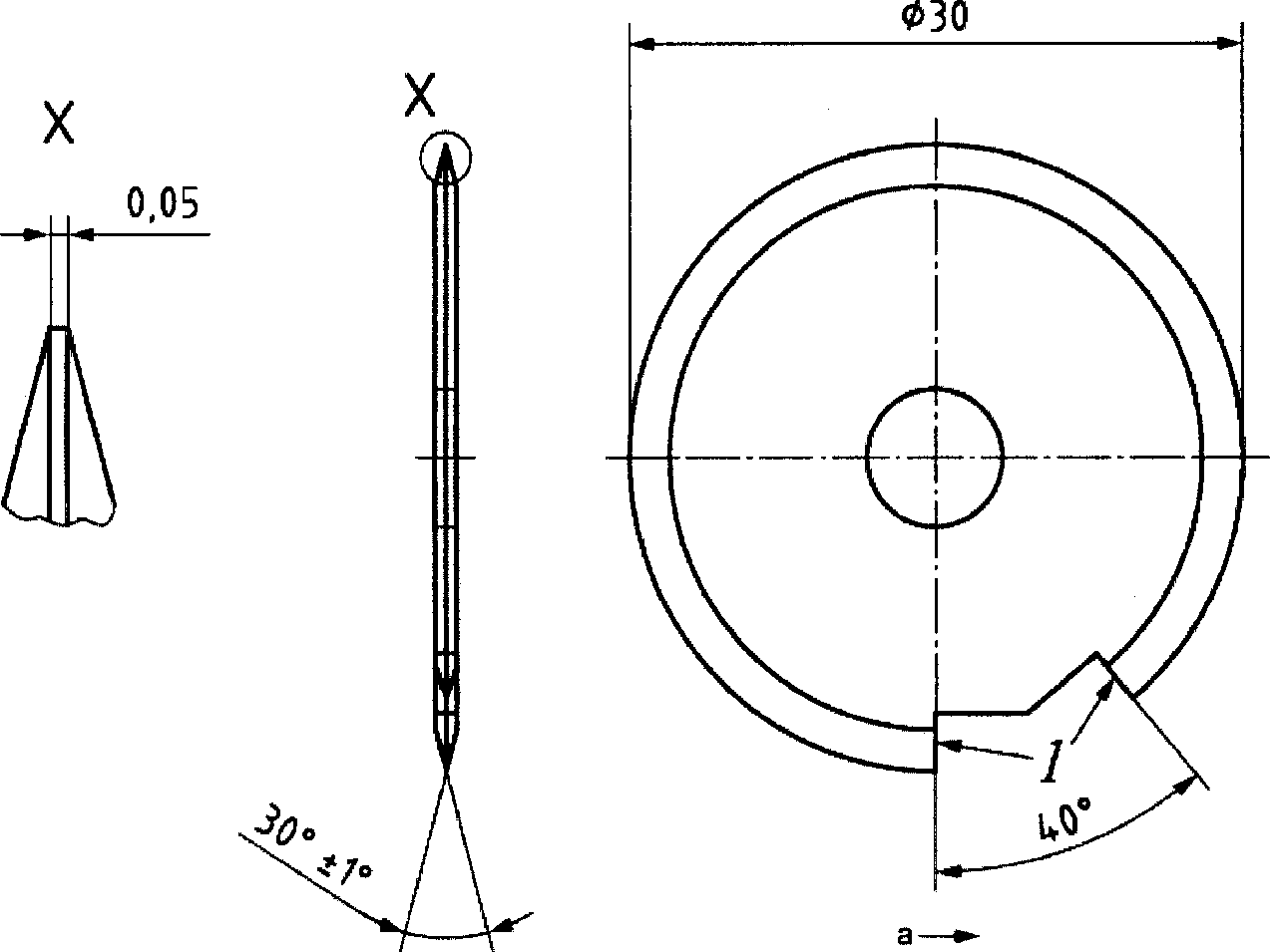 (3.2) держат перпендикулярно к поверхности испытуемой пластинки. При равномерном давлении на режущий инструмент, используя подходящий шаблон