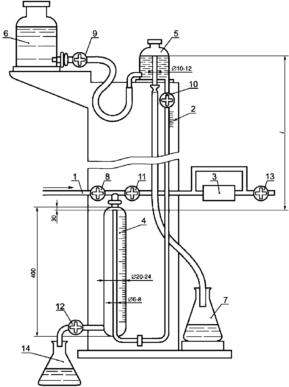 5 - сосуд с постоянным уровнем; 6 - сосуд с водой;