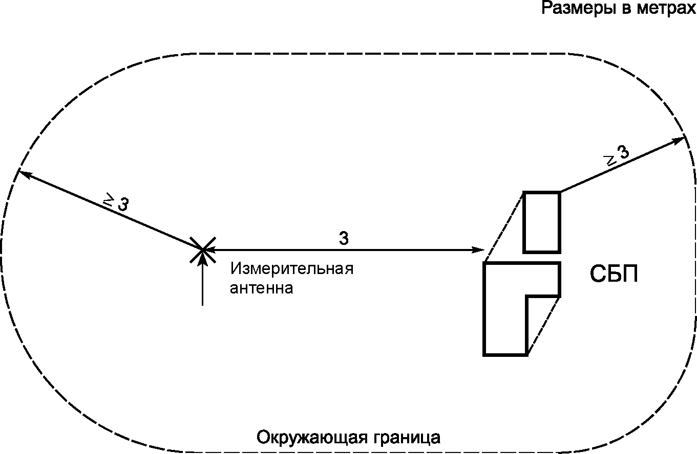 Измерения ИРП целесообразно проводить на границе помещения пользователя, в котором установлена СБП. Если эти границы находятся на расстоянии менее 30 м от места установки СБП, то испытания следует проводить на расстоянии 30 м от места установки СБП. Измерения проводят с внешней стороны наружной стены здания, в котором расположена СБП.