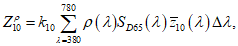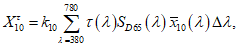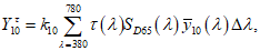 - удельные координаты цвета стандартного наблюдателя с углом обзора 10° на длине волны
