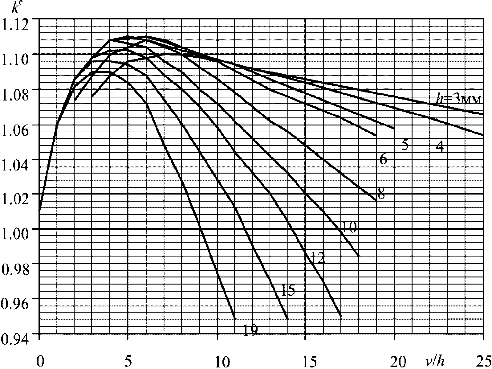 Рисунок 3 - Безразмерный коэффициент ke как функция от y/h