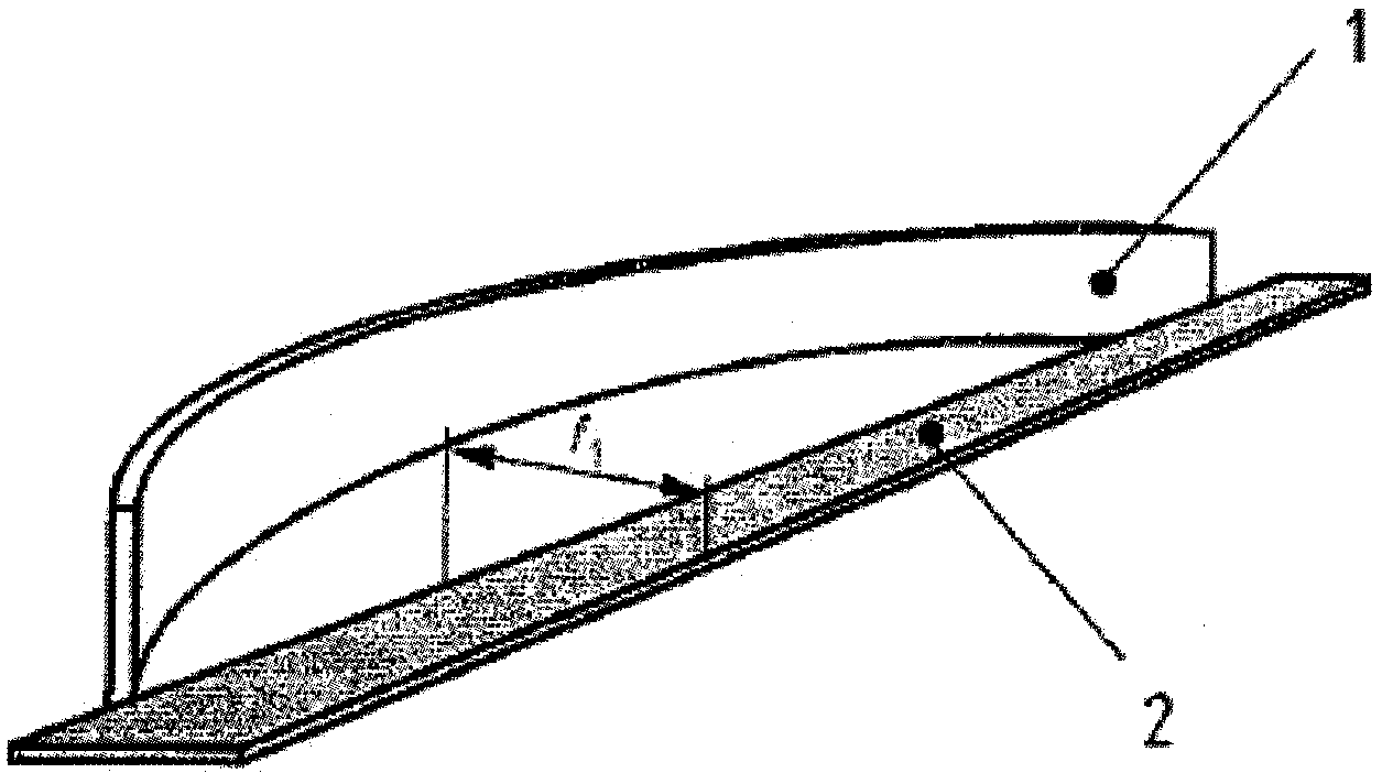 Образец для испытания 1 прикладывают к поверочной линейке 2, как показано на рисунке А.7, и с помощью штангенциркуля определяют максимальную покоробленность для каждого образца. Покоробленность считают вогнутой, если к линейке обращен поверхностный слой, и выпуклой, если к линейке обращена нижняя поверхность ламинированного напольного покрытия (рисунок А.7).