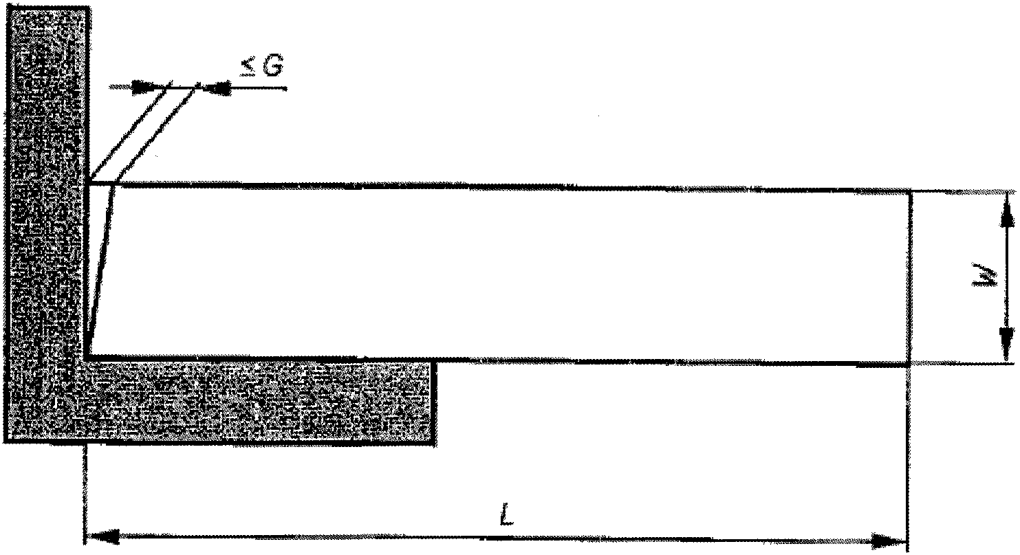 Сторону поверочного угольника прикладывают к продольной стороне образца для испытаний и с помощью щупов плоских определяют максимальное отклонение от прямоугольности вдоль поперечной стороны образца для испытаний (рисунок А.4).