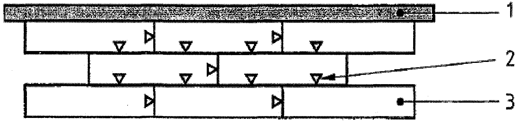 Образцы для испытаний соединяют между собой, как показано на рисунке Б.1. Линейка 1 служит направляющей, к которой прикладывают первый ряд собранных образцов.