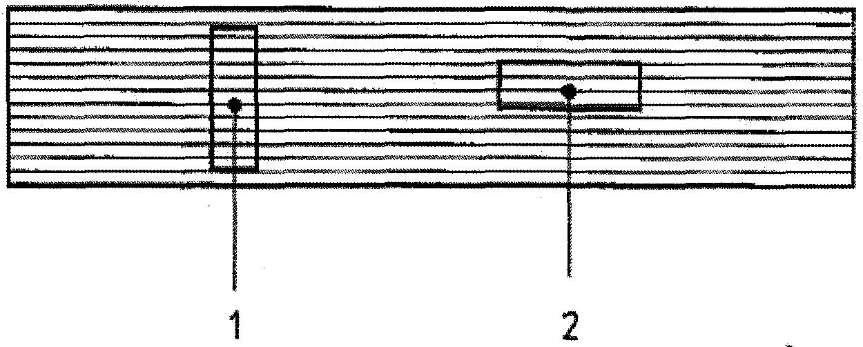 Из элемента ламинированных напольных покрытий выпиливают два образца длиной (150 +/- 1) мм, шириной (50 +/- 1) мм, один в поперечном направлении, другой - в продольном, на расстоянии не менее 50 мм друг от друга (рисунок Г.1).