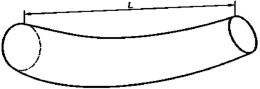 Длину прямых бревен измеряют как наименьшее расстояние L (м) между двумя параллельными плоскостями, пересекающими бревно у каждого торца перпендикулярно к его продольной оси (рисунок 1).