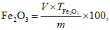 При анализе минерального порошка, содержащего двух- и трехвалентное железо, массовую долю оксида трехвалентного железа Fe2O3 (III), %, определяют по формуле: