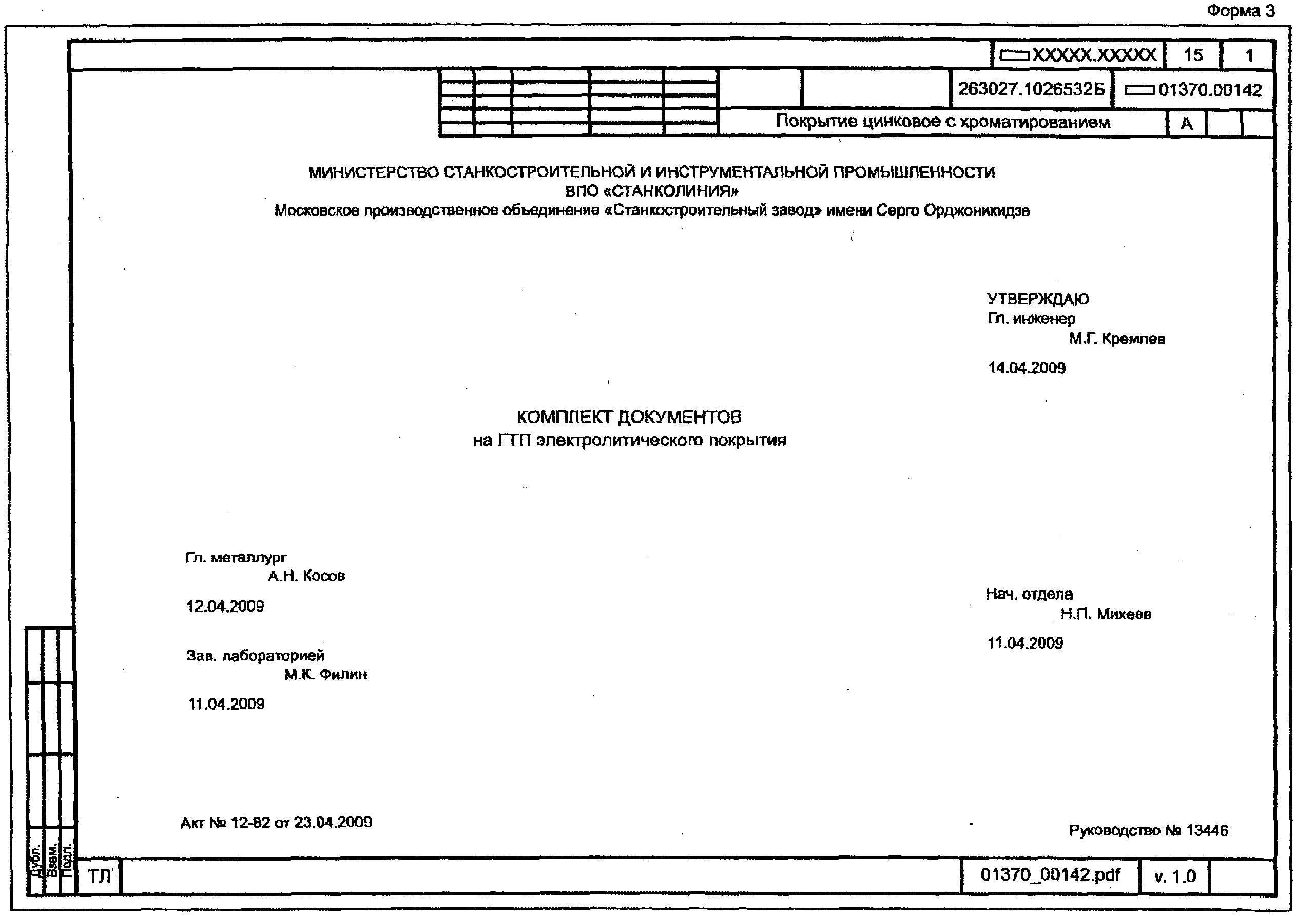 форму 1 применяют для комплекта документов (документации), выполненных на формате А4 с вертикальным расположением поля подшивки (или с преобладанием документов, выполненных на таком формате);