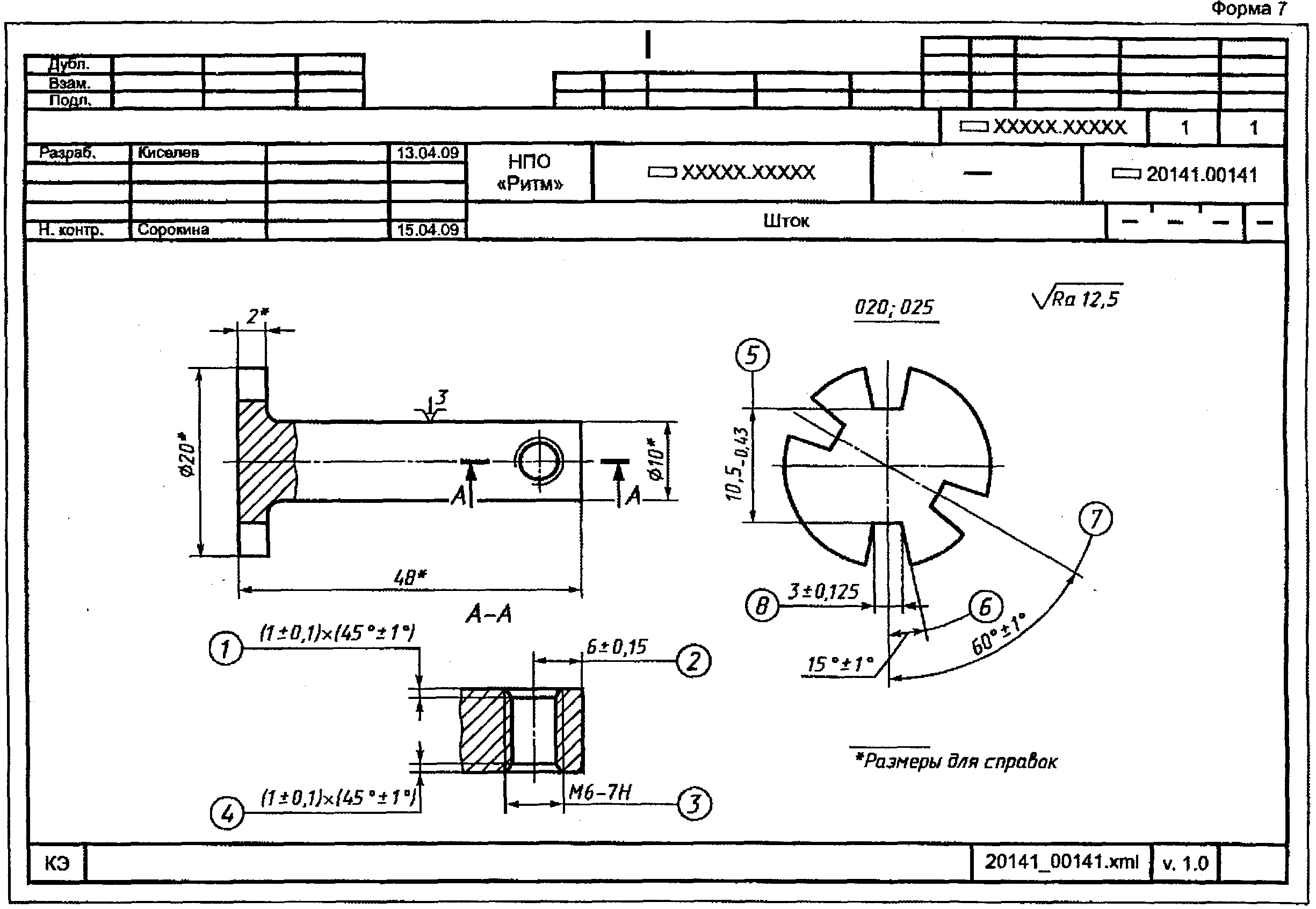 - меньшем А4 - размеры и расположение блоков основной надписи должны быть аналогичны форме КЭ, выполненной на формате А4 с вертикальным расположением поля подшивки;