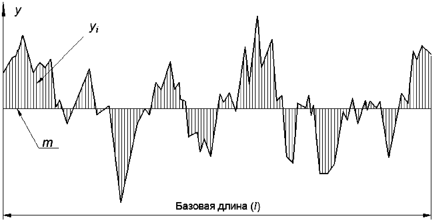 средняя линия профиля: Базовая линия, имеющая форму номинального профиля и проведенная так, что в пределах базовой длины среднее квадратическое отклонение профиля до этой линии минимально. |