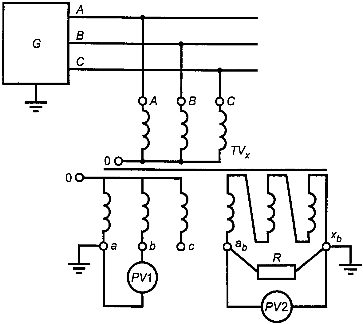 системы напряжений; PV1 - вольтметр с пределом измерения