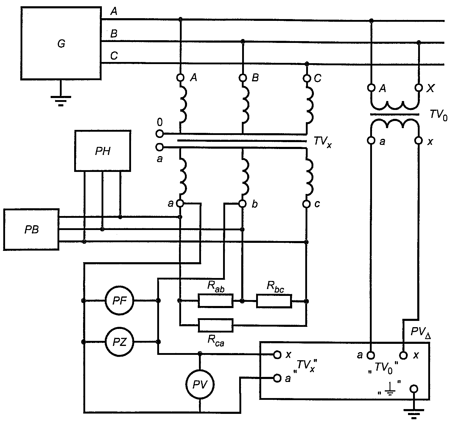 PH - фазоуказатель; PB - измеритель несимметрии;