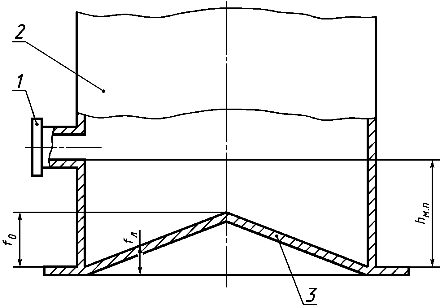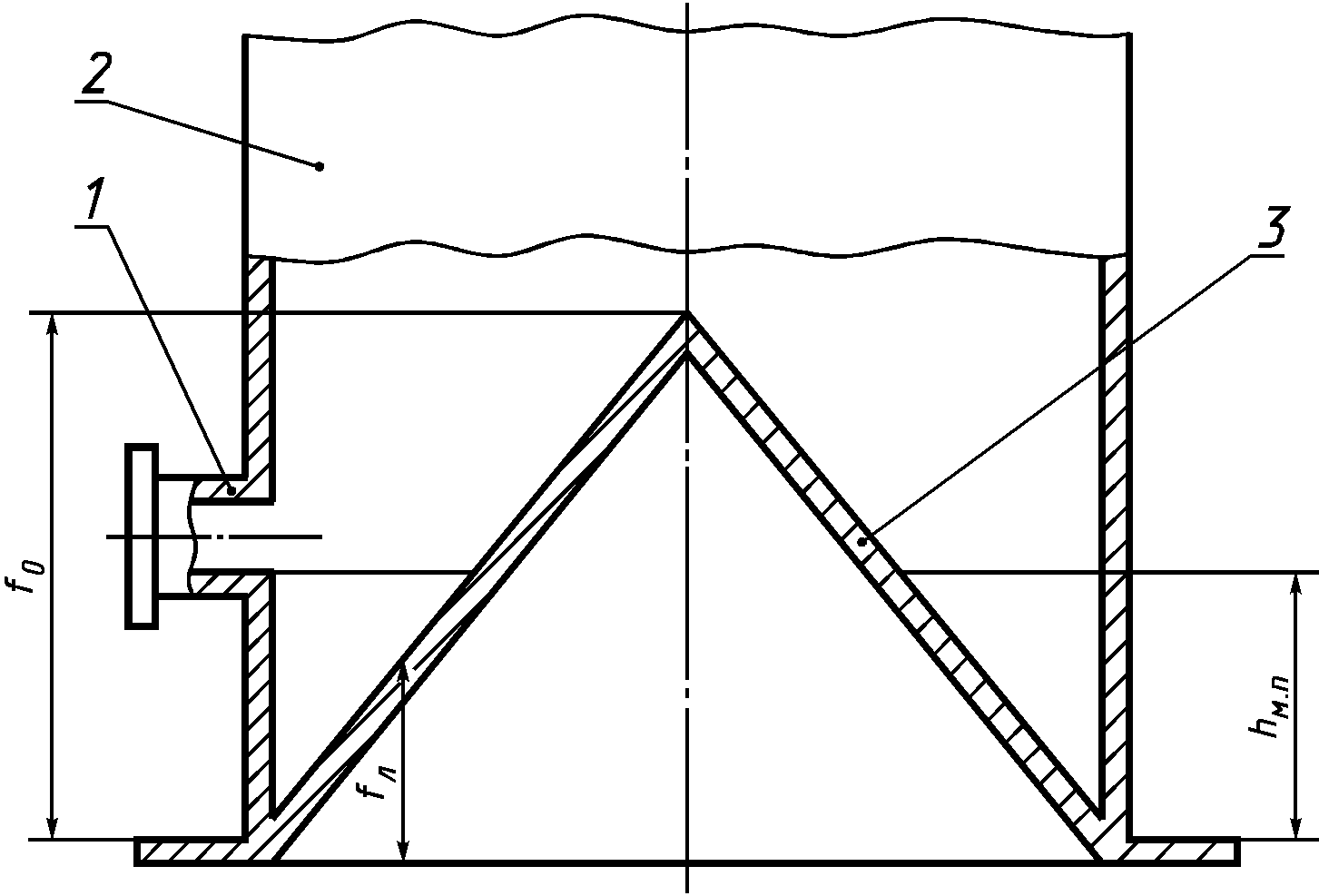 3.15. "Мертвая" полость резервуара: нижняя часть резервуара, из которой нельзя выбрать жидкость, используя приемно-раздаточный патрубок (приемно-раздаточное устройство).