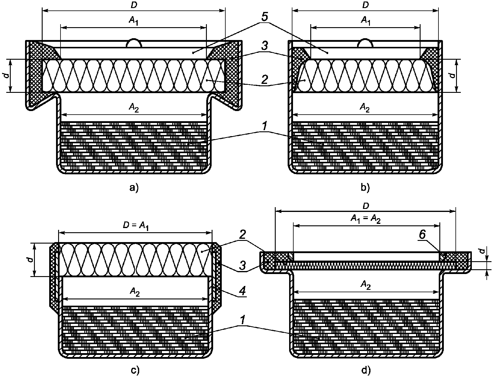 Примечание. Испытательные чашки могут быть непригодны для некоторых видов материалов. Данное ограничение должно быть указано в стандарте на конкретное изделие.
